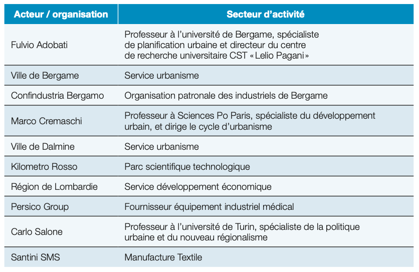 Annexe II – Liste des personnes/organisations interrogées à Bergame