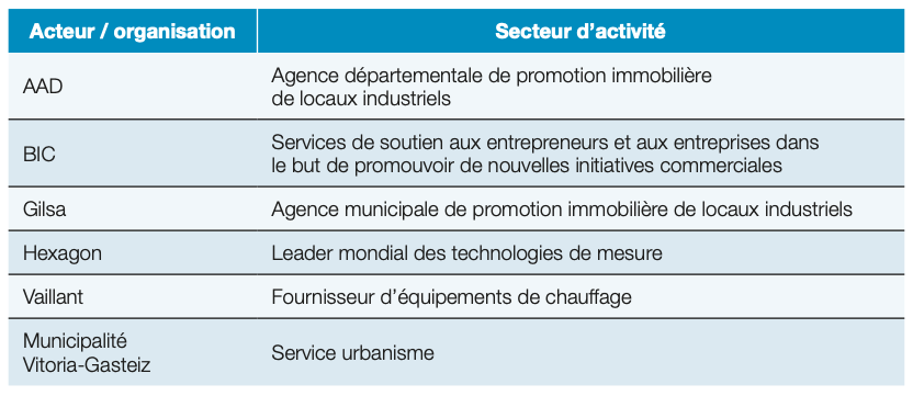 Dans la province d’Álava, la gestion du foncier à destination de l’industrie est confiée à des aménageurs-promoteurs publics. Chaque échelon local dispose de son acteur : Sprilur pour le gouvernement basque, l’Agence de développement de l’Álava pour le Conseil provincial de l’Álava, Gilsa pour la ville de Vitoria-Gasteiz. Ces agences servent notamment d’intermédiaires fonciers : leur rôle est d’identifier les besoins, d’acheter le foncier (souvent agricole), de le préparer (urbanisation, réseaux) puis de le vendre aux entreprises. Ces agences disposent d’un capital majoritairement public afin d’éviter la spéculation sur les prix du foncier.