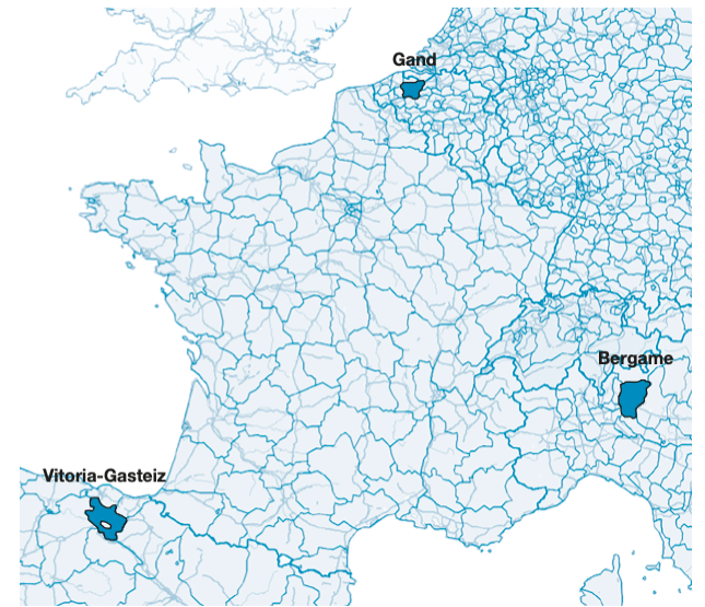 À cette fin, cet ouvrage étudie les stratégies foncières de trois territoires urbanisés d’Europe qui tous conjuguent la présence significative d’activités industrielles et une politique assumée d’urbanisation durable : Bergame, située à cinquante kilomètres au nord-est de Milan, Vitoria-Gasteiz dans le Pays basque espagnol et Gand au nord-ouest de la Belgique. Ce travail s’inscrit par ailleurs dans la continuité des travaux menés par Duarte et al. (2024) et Ferchaud et al. (2024) sur les outils dont disposent en France les acteurs publics locaux pour accompagner le déploiement des activités productives.