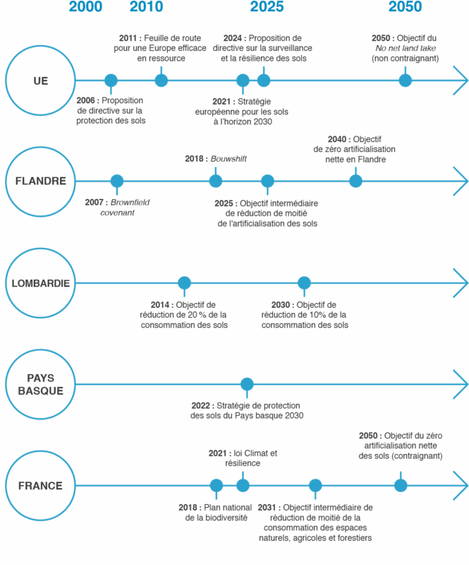 ESPON (2024). Trajectoires de zéro artificialisation nette des sols (ZAN) – Politiques et pratiques à travers l’Europe [Note d’orientation]. https://www.espon.eu/sites/default/files/2024-12/no-net-land-take-trajectories_policy-brief.pdf