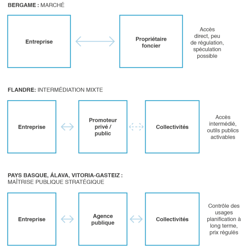 A contrario, il existe d’autres configurations, reposant sur des chaînes d’intermédiation plus longues, et où l’accès des industriels à la ressource foncière s’opère via des agences publiques, qui jouent alors un rôle central dans l’acquisition, l’aménagement et la mise à disposition du foncier.