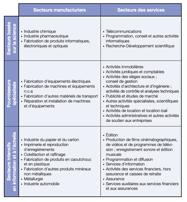 Galindo-Rueda F. et Verger F. (2016), « OECD Taxonomy of Economic Activities Based on R&D Intensity », OECD Science, Technology and Industry Working Papers, 4, OECD Publishing, Paris.