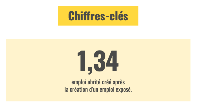 Étant donné que l’emploi exposé exerce aussi un effet d’entraînement sur lui-même, on peut également estimer à 89 000 le nombre d’emplois exposés créés par prolongement du dynamisme industriel.