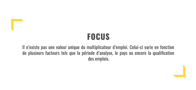 Il faut également noter que l’effet multiplicateur de la création d’emplois n’est pas proportionnel à celui que l’on observe en cas de destruction d’emplois exposés, par exemple lors de la réduction voire de la fermeture d’un site industriel. En effet, même si des licenciements massifs peuvent avoir un effet négatif durable sur un territoire, on observe empiriquement que les destructions d’emplois sont en partie compensées par des créations dans le même territoire et la même industrie (Jofre-Monseny et al., 2018).