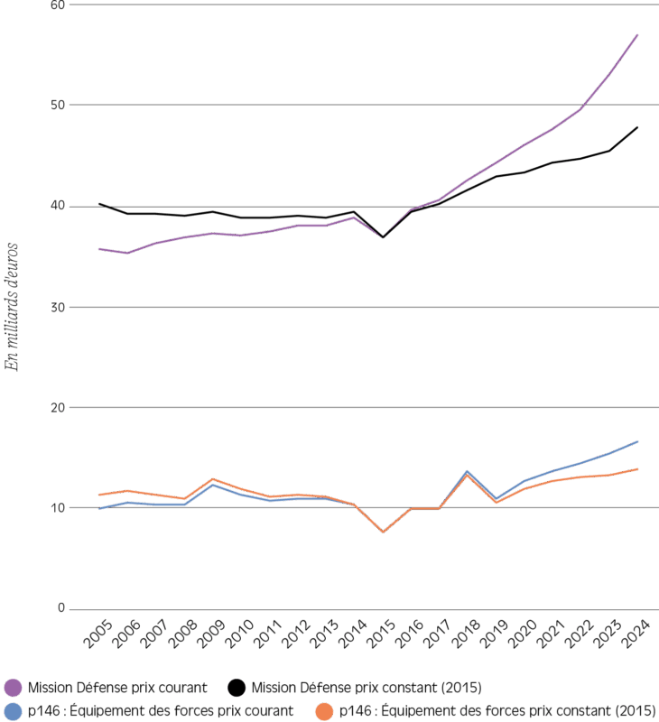 Évolution de l’effort public de défense entre 2005 et 2024, en France