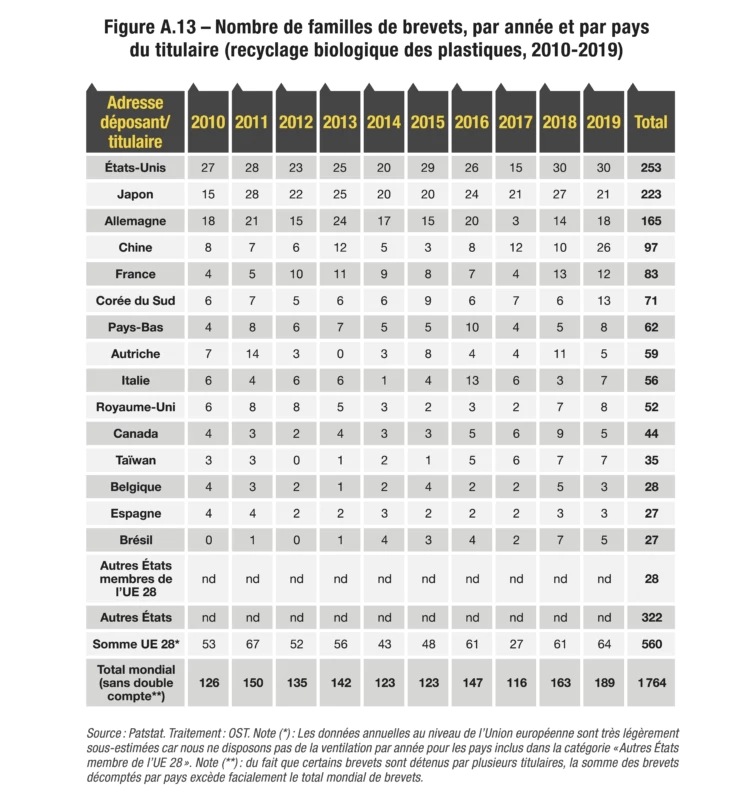 - 35. L’OST a utilisé les familles docdb comme unité d’analyse des brevets. La famille docdb est construite par les experts de l’Office européen des brevets pour Patstat et elle est non reproductible.