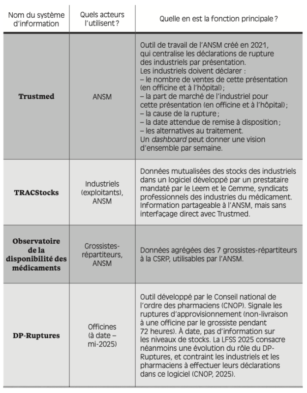 Annexe IV – Systèmes d’information utilisés pour la gestion des pénuries