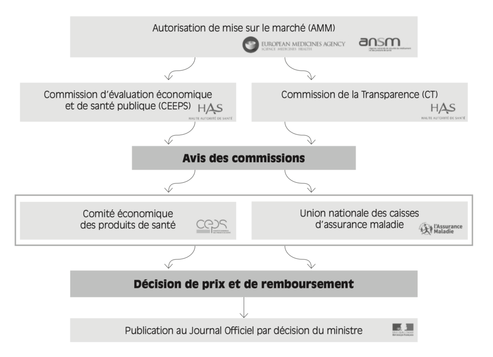 Figure 1.3 – Circuit de mise sur le marché en France et tarification des médicaments en ville