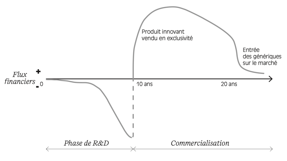 En préalable à la production d’un médicament, des laboratoires privés ou publics assurent une phase de recherche et de développement (R&D) du produit, laquelle débouche sur des essais cliniques. Si ces derniers sont concluants, le produit obtient son homologation, condition sine qua non de sa mise sur le marché.