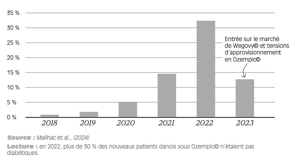 Mailhac, A., Pedersen, L., Pottegård, A., Søndergaard, J., Mogensen, T., Sørensen, H. T., & Thomsen, R. W. (2024). Semaglutide (Ozempic®) Use in Denmark 2018 Through 2023 User Trends and off-Label Prescribing for Weight Loss. Clinical epidemiology, 16, 307–318.
