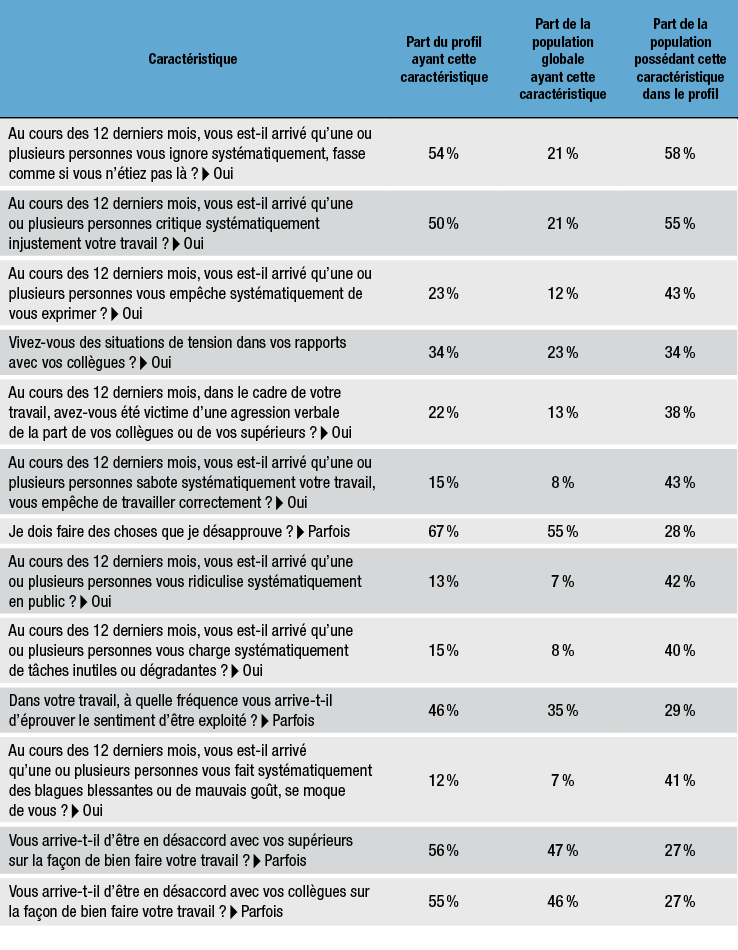 Tableau 17 – Description du profil Tensions avec la hiérarchie